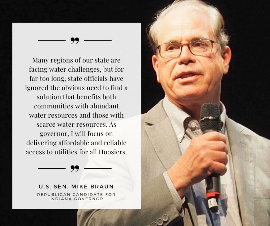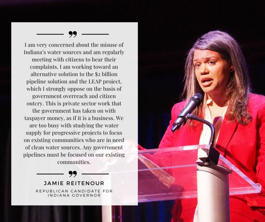 A plan to divert billions of gallons of water per year from the Lafayette region down to Boone County for the high-tech LEAP park has increased attention to the state’s water quantity and quality. What concerns, if any, do you have about Indiana’s water sources, and what plan might you have to guarantee Hoosier communities have adequate access to clean water?