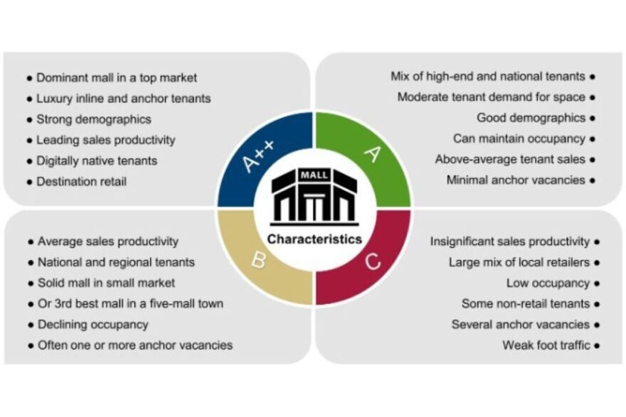 Green Street gave College Mall a grade of A back in 2009-2010. It was reduced to a grade B mall but has been recently upgraded to B+. Green Street assigns grades based on tenant mix, productivity (sales per square foot, mall sales, foot traffic), location (redevelopment potential) and condition.