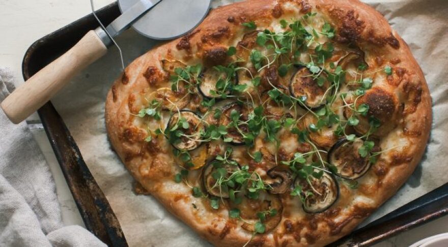 Squash & Eggplant Brie Arugula Pizza